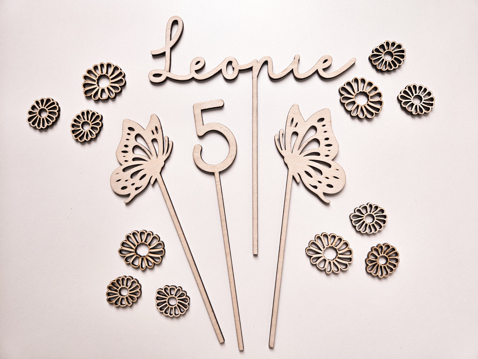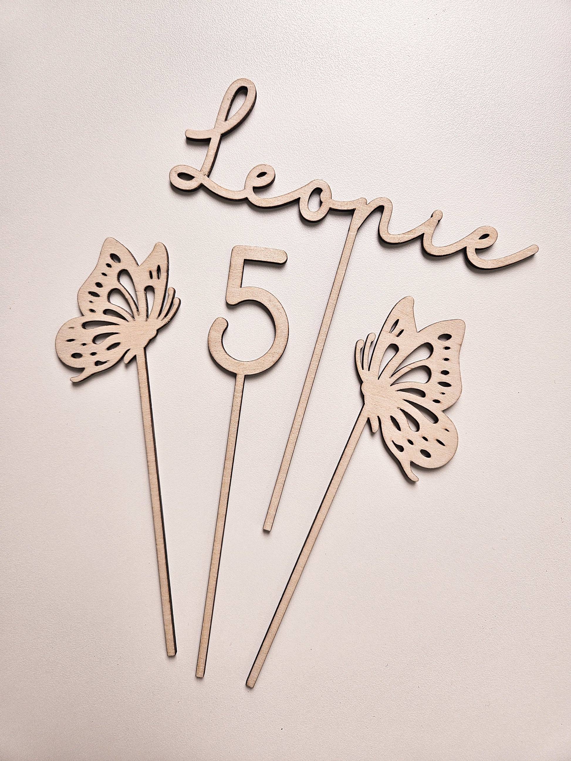 Cake Topper Schmetterlinge, personalisierbar mit Namen und Alter aus Holz, Torten Dekoration.