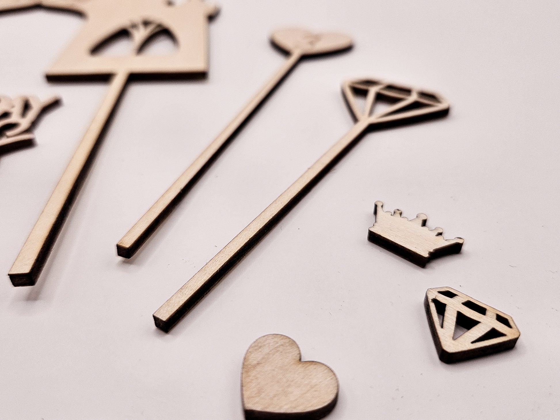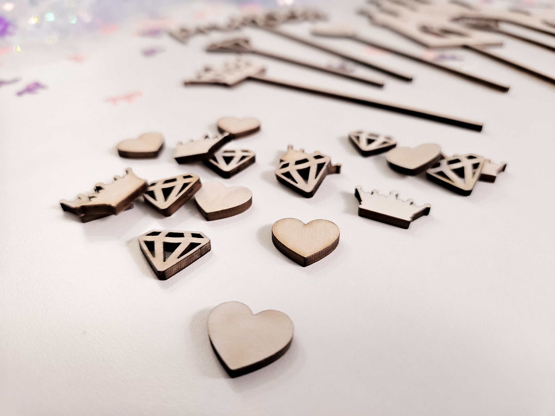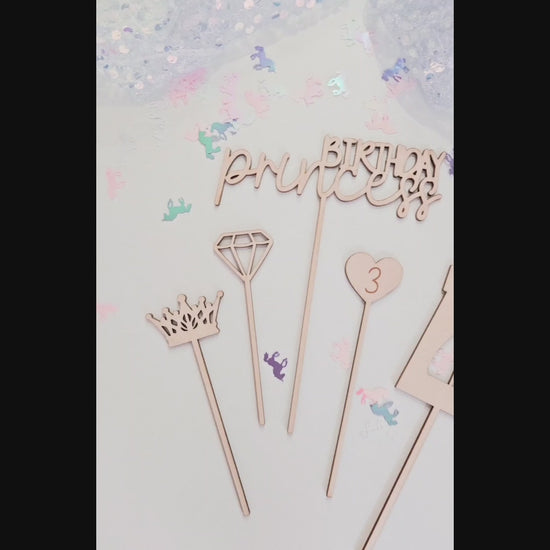 Lieferumfang: Schloss-Topper, „Birthday Princess“-Schriftzug, Herzen, Holzdiamanten & kleine Holzdeko-Elemente