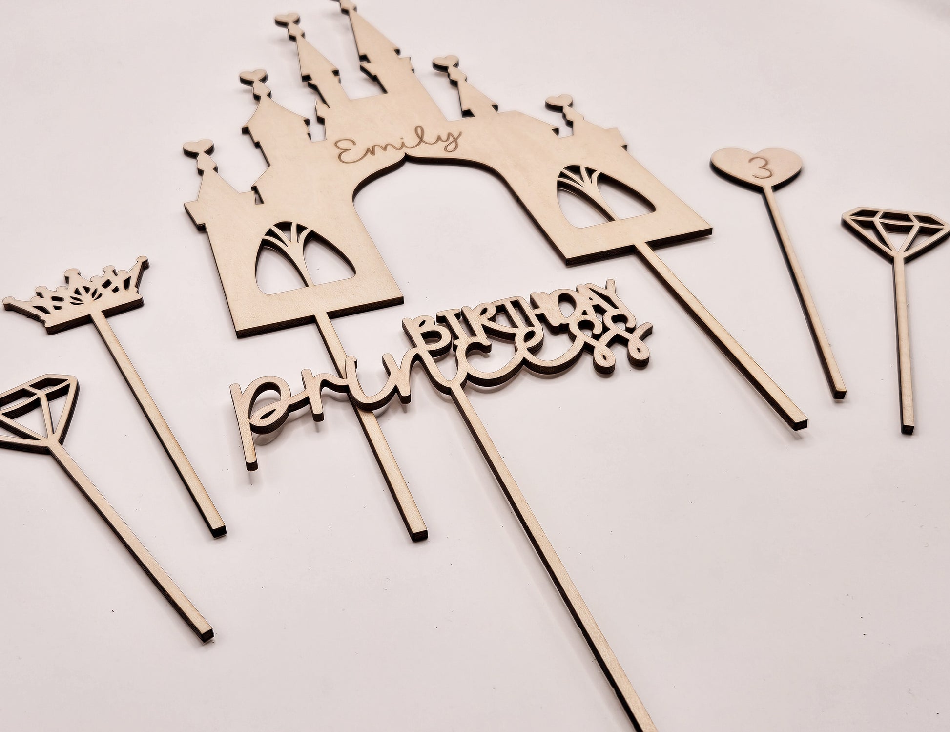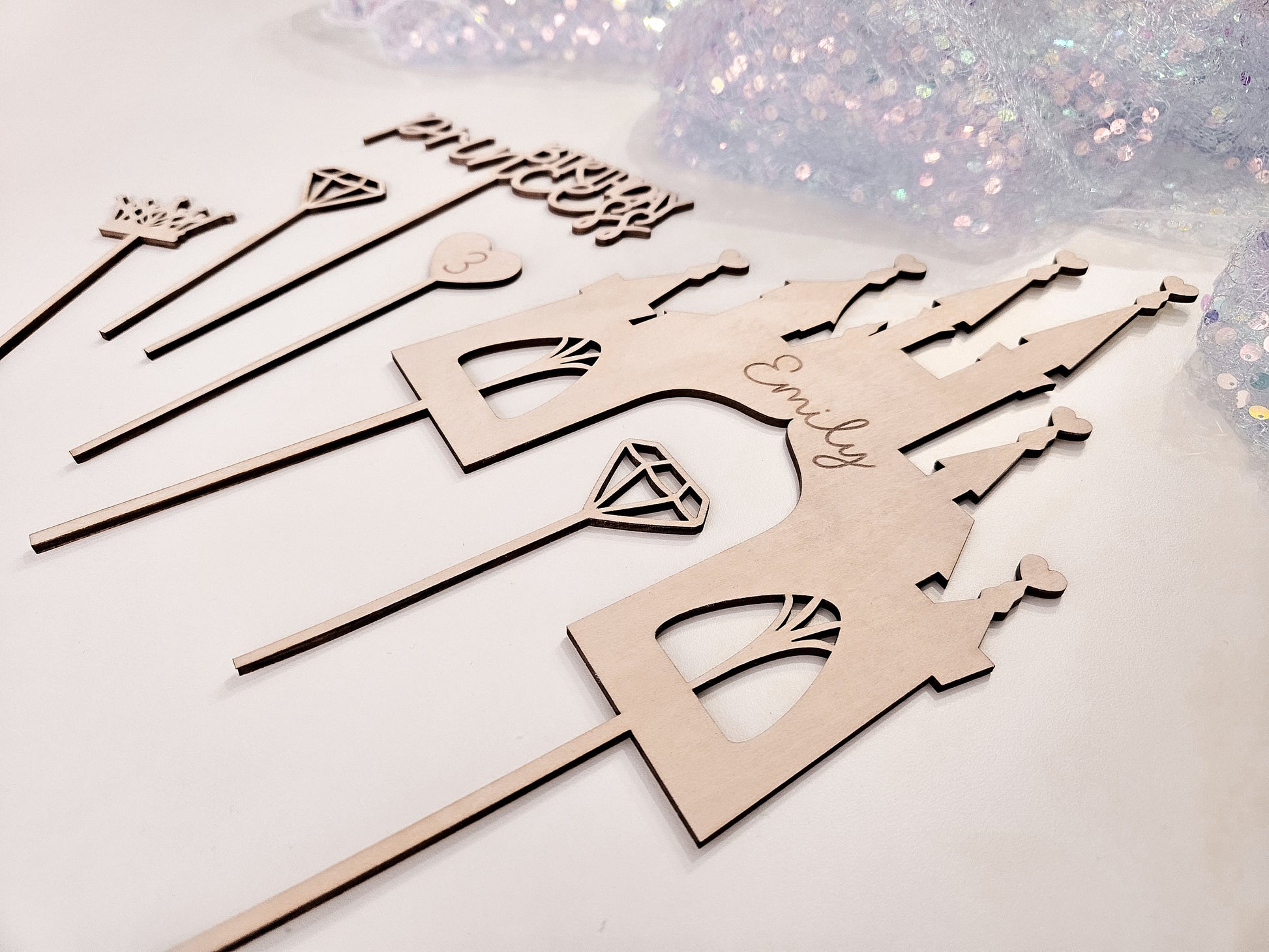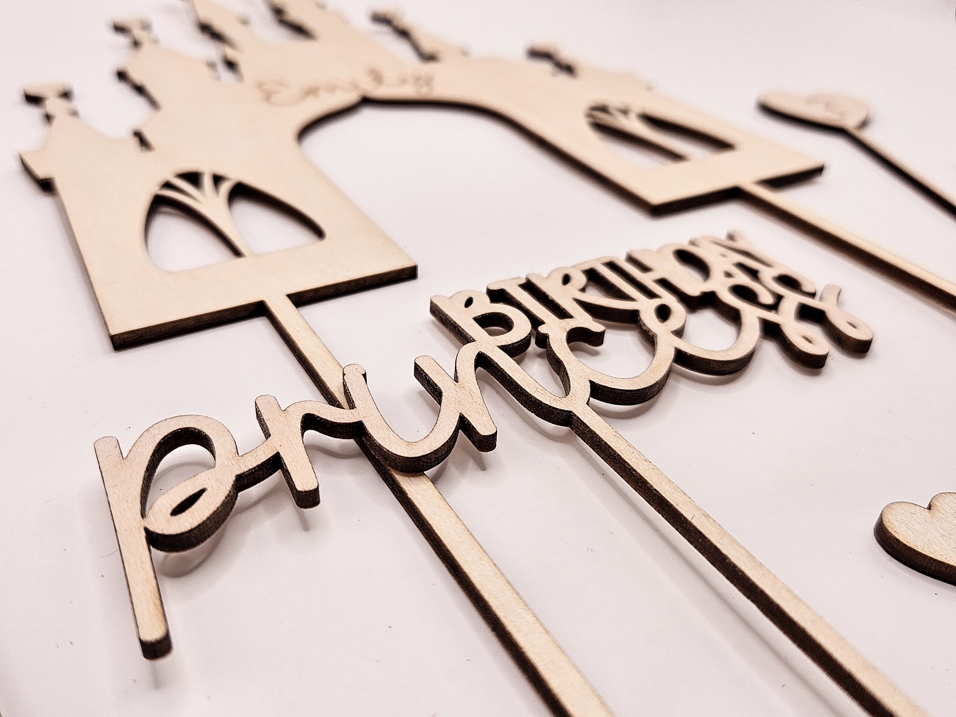 Personalisierter Cake Topper Holz – Prinzessin Schloss, Birthday Princess, Name, Alter Mädchen Geburtstag Deko