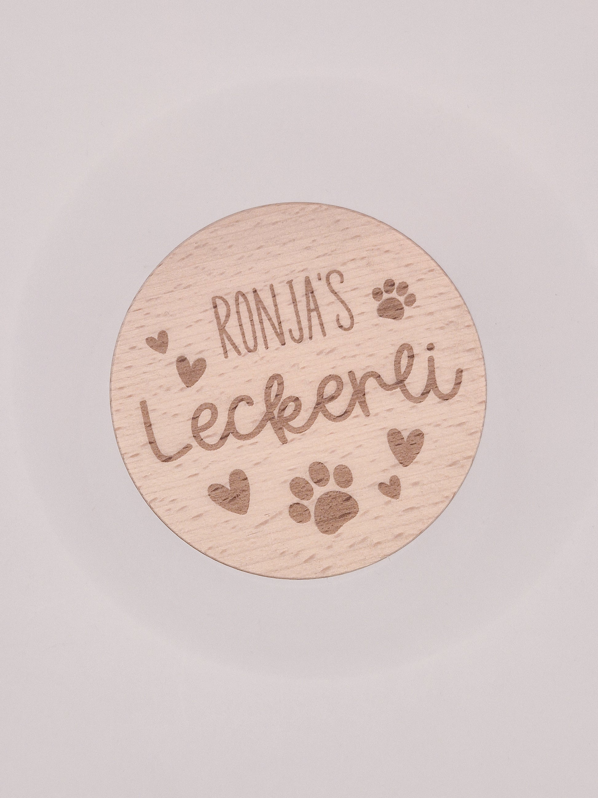 Personalisiert: Hundename graviert auf dem Buchenholzdeckel