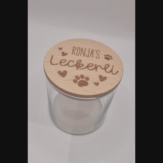 Personalisiertes Leckerli Glas für Hunde – gravierter Hundename, „Leckerli“, Tierpfoten als Geschenk für deinen vierbeinigen Liebling