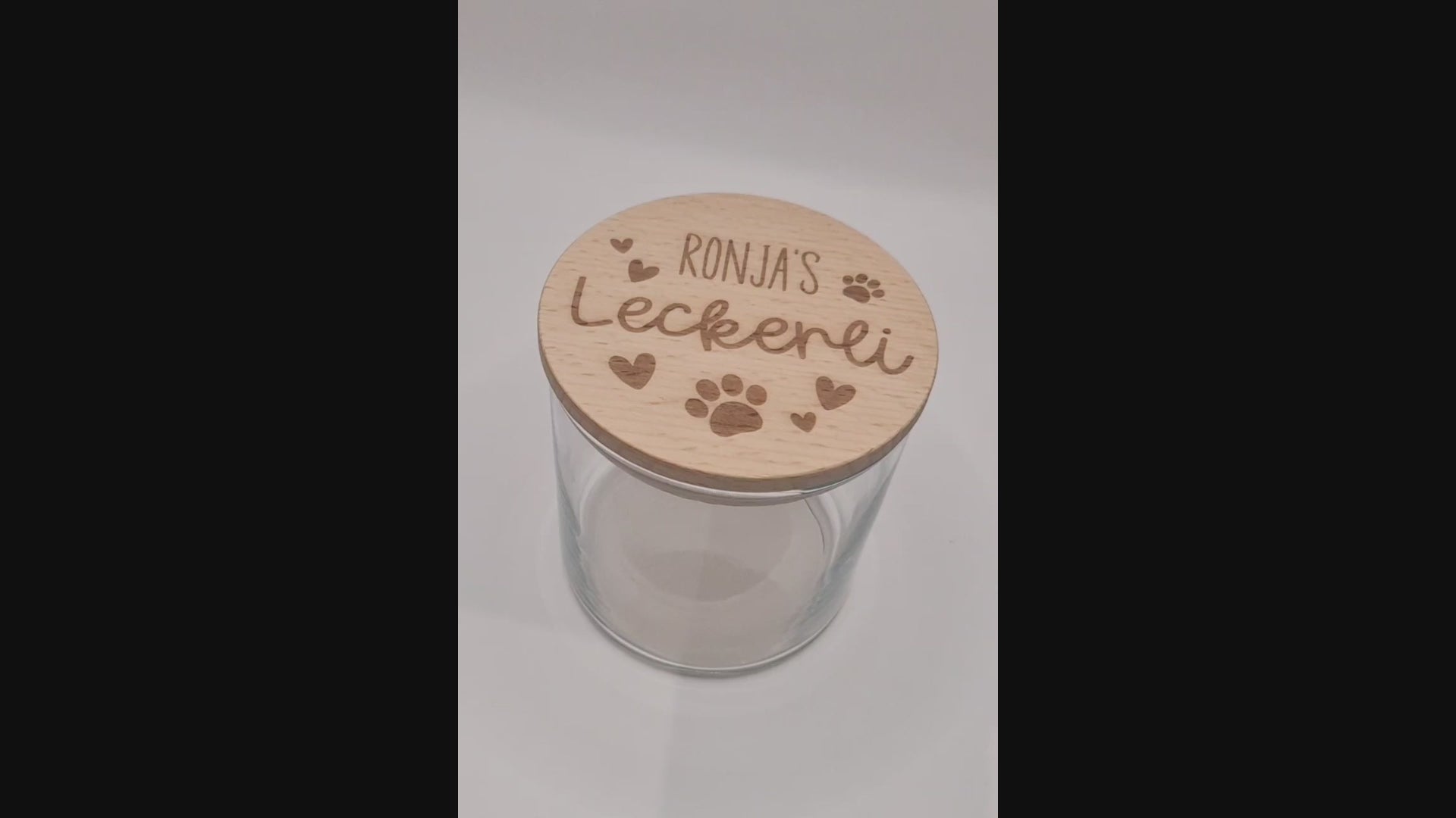 Verschenke Freude mit diesem stilvollen Geschenkglas für alle Vierbeiner.. Der Buchenholzdeckel trägt eine persönliche Gravur: den Namen deines Hundes, ergänzt durch die liebevollen Akzente Leckerli, Tierpfoten und Herzen. Die Kombination aus klarer Gravur und natürlicher Holzoptik macht das Glas zu einem besonderen Geschenk für Hundeliebhaber – ideal für Geburtstage, Weihnachten oder als kleine Aufmerksamkeit zwischendurch.